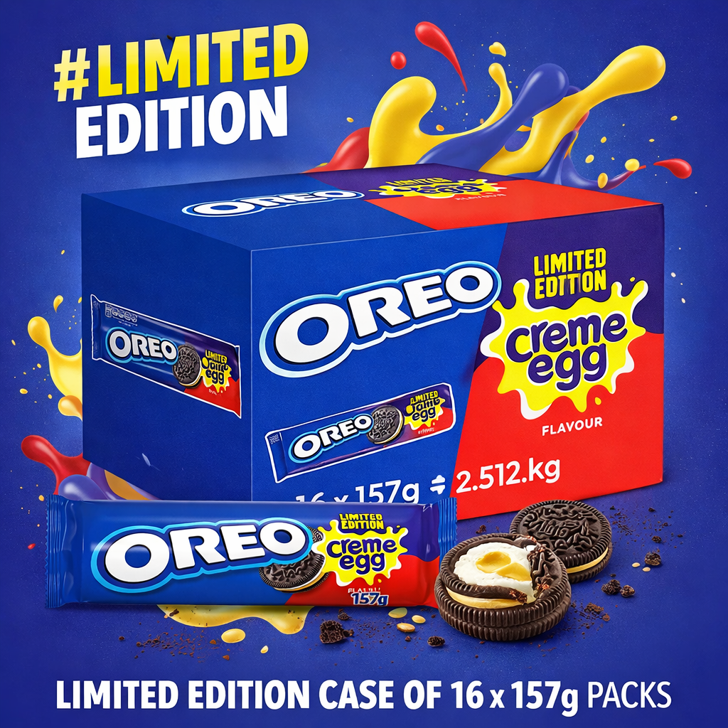 New Limited Edition Creme Egg Flavour Oreo Biscuits. Chocolate sandwich biscuits with a vanilla and fondant filling.