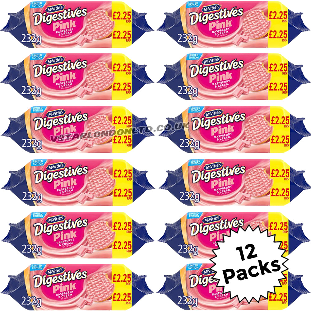 McVitie's Digestives Pink Raspberry & Cream Biscuits 12 x 232g – Limited Edition