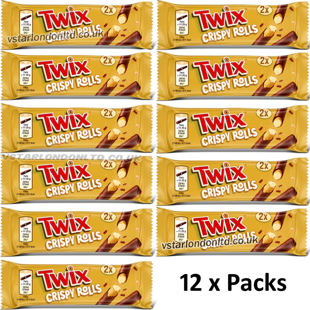 🍫 Twix Crispy Rolls (22.5g) – Crunchy wafer fingers with a smooth caramel-flavoured filling coated in milk chocolate. A fun new twist on the iconic Twix.
