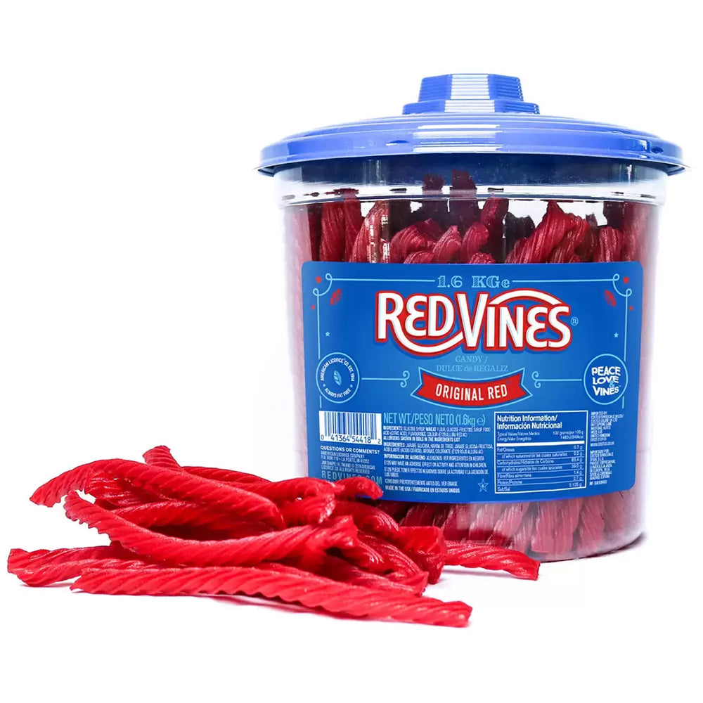 Enjoy the classic taste of Red Vines Original Twists! Made with real cane sugar, soft and chewy texture, Halal and Kosher certified. Perfect for sharing – 1.6kg tub