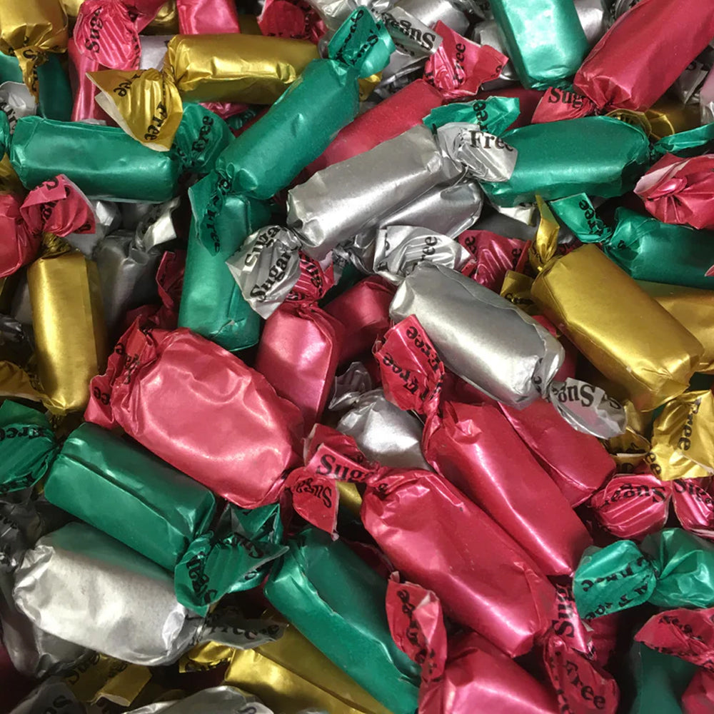 Stockley’s Sugar Free Assorted Toffee – liquorice, vanilla, rum & butter & peppermint. Available in 1kg–3kg bulk bags. Individually wrapped, vegetarian & gluten free.
