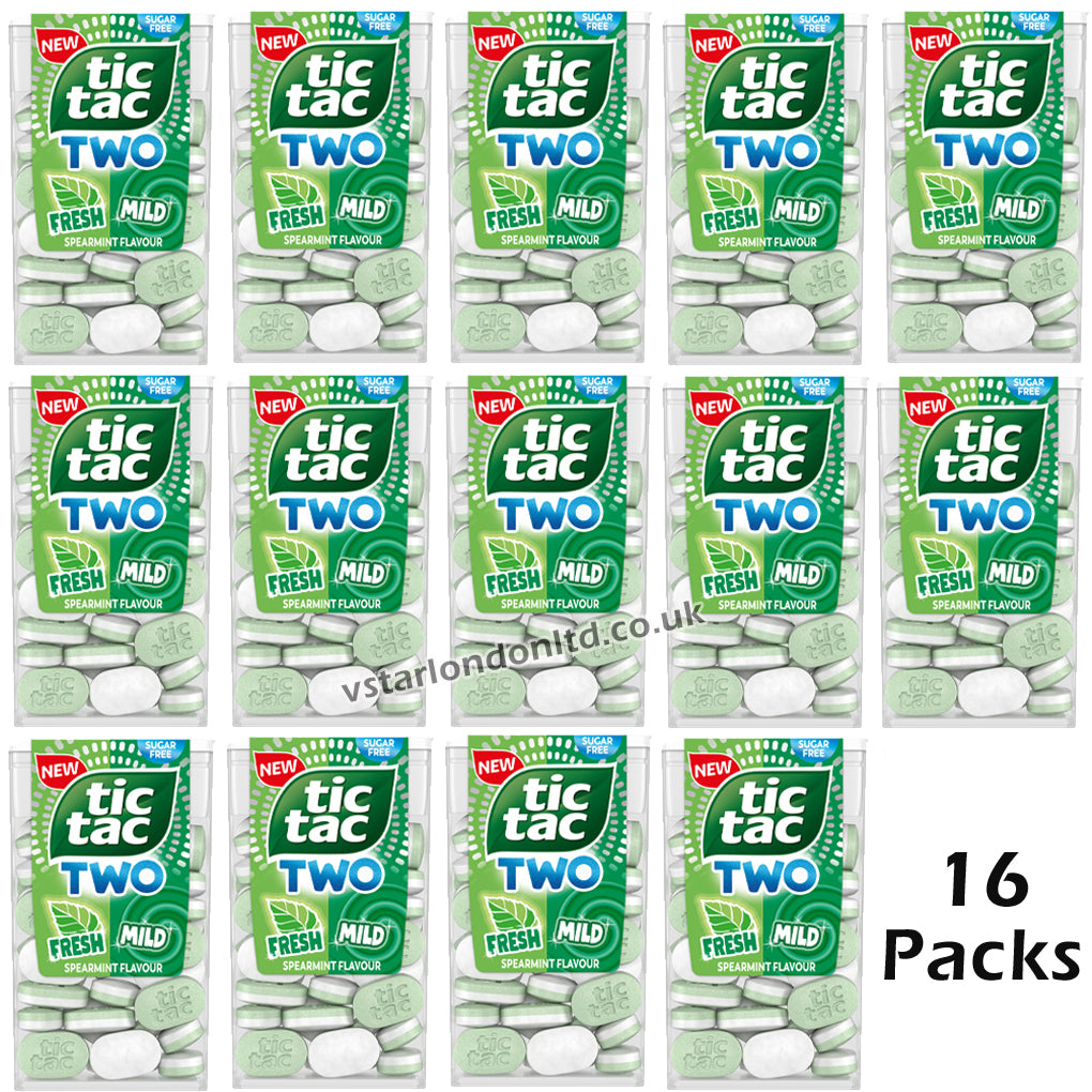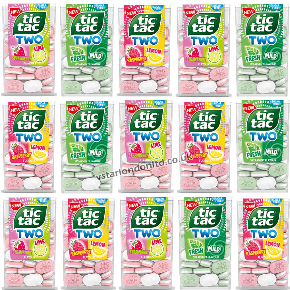 Enjoy a burst of refreshing flavor with Tic Tac Two! This variety pack features three exciting flavors: Raspberry & Lemon, Spearmint, and Strawberry & Lime, each in a convenient 38g pack. Whether you crave a fruity zing or a cool minty sensation, Tic Tac Two delivers the perfect balance of taste and freshness. Ideal for on-the-go moments, sharing, or simply treating yourself. Grab yours today and experience double the fun in every Tic Tac